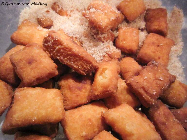 Ich habe das Rezept ausprobiert, und ich muss sagen: schnell und einfach, aber vom Geschmack her den Versuch wert! Die Dinge sind nicht zu süß, die saugen nicht sehr viel Öl, aber die sind ganz schnell fertig (ich hab sie kaum ins Fett gelegt, da waren sie schon braun!) und bleiben lange kross und knusprig! Ich werde sie wieder machen, z.B. wenn ich Gäste erwarte aber doch keine Zeit habe um einen Kuchen zu backen.