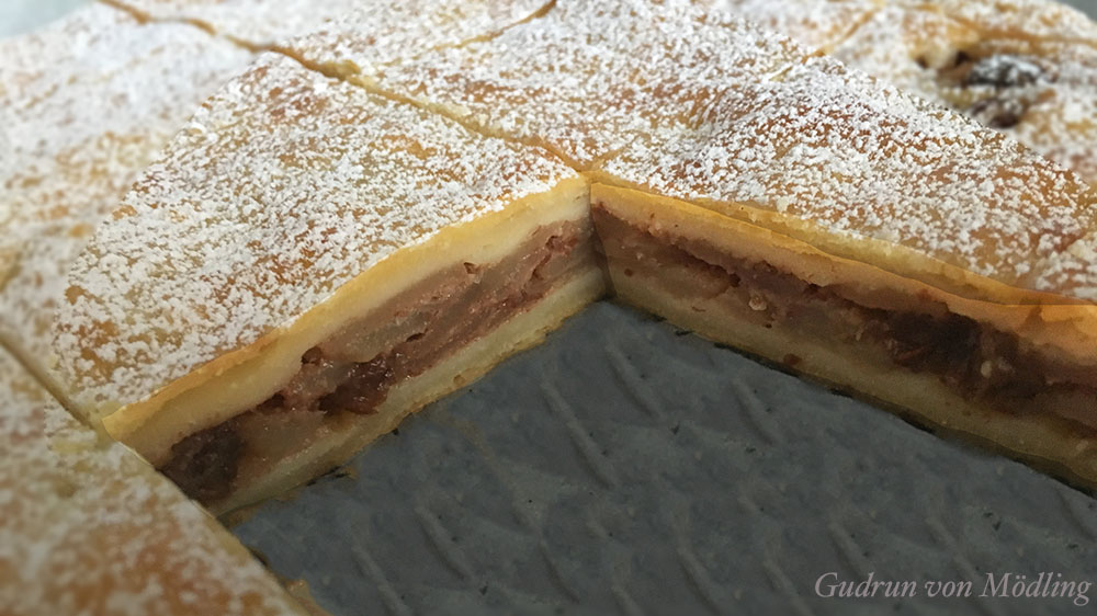 Rezept wie immer hier zum Ausdrucken: Gedeckte Apfelschnitten aus Topfenteig