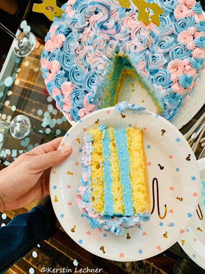 Die Fülle sollte dann in blau sein, damit beim Anschnitt der Aha-Effekt eintritt und spätestens dann alle wussten das es ein Bub wird 🙂