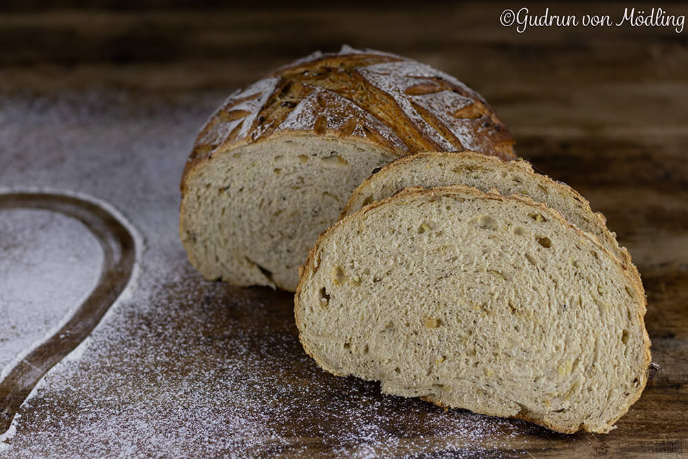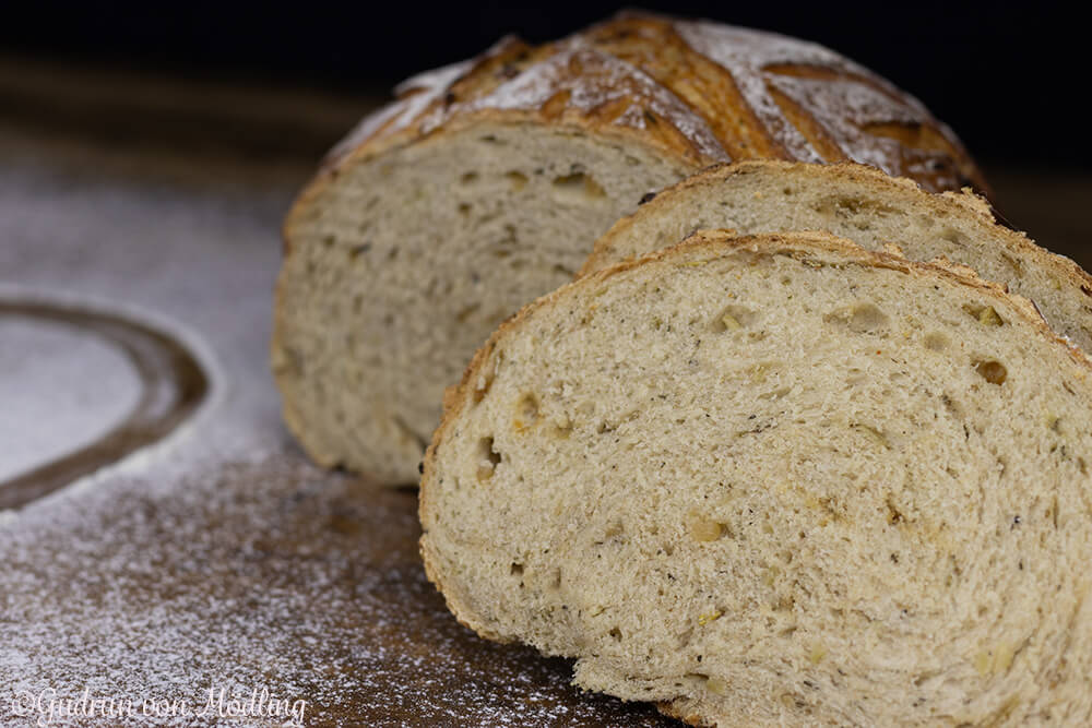 Dieses Brot eignet sich hervorragend zum Frühstück oder als Beilage zu Suppen und Salaten. Durch die Kombination aus Weizen- und Roggenmehl und über Nachtgare, erhält es eine feine knusprige Krume und einen ausgewogenen Geschmack.