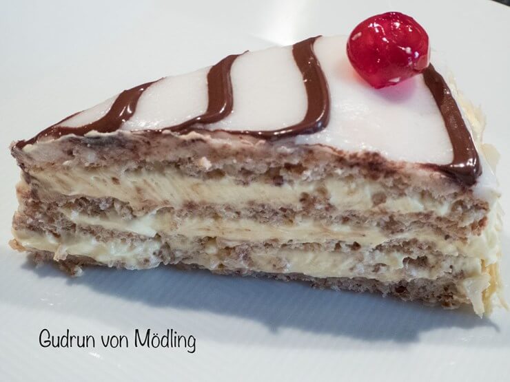 Ich habe sie heuer als „Weihnachtstorte“ für die ganze Familie gemacht. Ausgezeichnet, wenn auch etwas schwierig (anspruchsvoll) in der Herstellung. Aber ich hab‘ es geschafft, auch wenn ich „nur“ Laie und bin und nur fallweise als Hobbykonditor tätig bin, alle waren zufrieden damit und ich habe dafür viel Lob eingeheimst