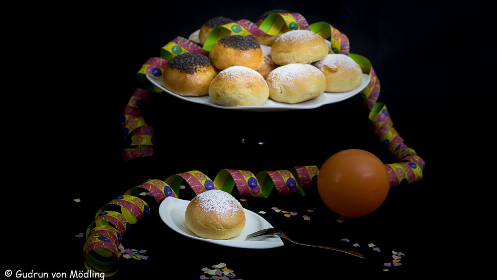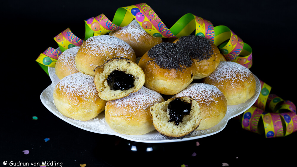 In diversen Kochgruppen auf Facebook geistern auch Faschingskrapfen aus dem Backrohr herum. Neugierig wie ich bin, wollte ich unbedingt wissen, wie die denn so sind. 🙂