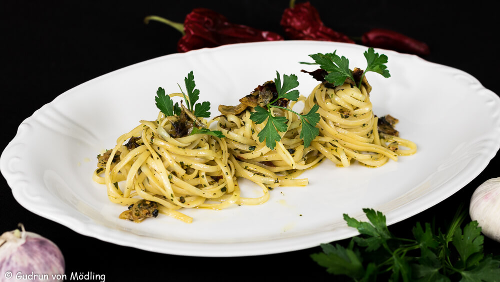 - Linguine Aglio e Olio (Linguine mit Knoblauch und Olivenöl)
