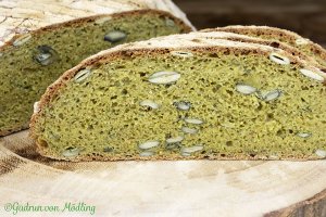 Es sind mir natürlich noch Öl und Kürbiskerne übriggeblieben, die ich kurzerhand in dieses Brot verwandelt habe.