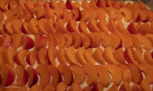 Die Topfen-Mascarpone-Masse gleichmäßig verstreichen und dicht mit den Marillen belegen.