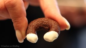 Einen Teil des Teiges herausnehmen und zwischen den Handflächen zu Kipferl formen und im Rohr bei ca. 160 C° Ober-/Unterhitze 8 – 10 Minuten backen. Mit dem restlichen Teil ebenso verfahren. Wenn der Teig schön kühl ist, geht das super, wenn er zu warm ist dann wieder etwas kühlen.