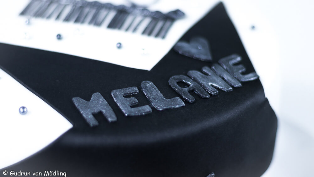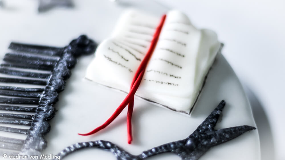 Melanie wurde 11 Jahre und hat sich von mir genau so eine Torte gewünscht 🙂 Sie hat mir genaue Anweisungen gegeben was darauf sein soll, ihr Name, ein Kamm, ein Buch und eine Schere…………. Ach ja, und unbedingt schwarz – weiß und silber.
