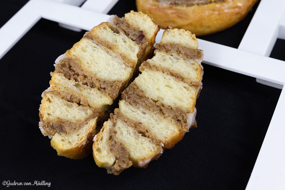 Ich steuerte auf Isabella, meine neue Arbeitskollegin zu und begrüßte sie. Ganz neugierig fragte sie mich, was ich denn in der Schachtel hätte. Ich zeigte ihr die Nussschnecken und schon griff sie nach einer. Einmal abgebissen und sie verdrehte Ihre Augen. Was heißt das jetzt, fragte ich mich? Ewas gutes? Natürlich 🙂 Nachdem sie den ersten Bissen fast hinuntergeschluckt hatte, sprudelte es auch schon aus ihr heraus: bist du wahnsinnig, sind die aber gut. Schmecken einfach genial.