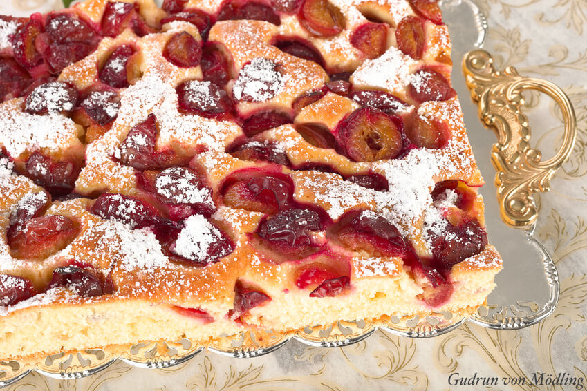 Ein einfacher und schneller Kuchen für jeden Tag, köstlich, frisch und leicht und am besten mit Steinobst wie Marillen (Aprikosen), Zwetschken oder Kirschen. Oder auch mit geriebenen Äpfeln. Durch die Kombination von süß und flaumig und den leicht säuerlichen Früchten, und vor allem dem großen Anteil von Früchten, eigentlich ein Sommer/Herbst Kuchen. Aber ich mag ihn auch im Winter, da hol ich mir den Sommer in die Wohnung 🙂