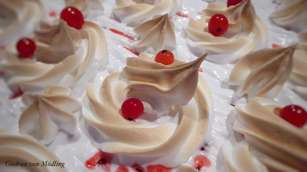 Zur Frage: Wie wird der Schnee nicht „pickig“ ? Ein Konditor hat mir einmal erklärt, pro mittleres Ei mindestens 50 g Zucker. Und verhindern kann man es auch so nicht ganz. Der Schnee zieht Feuchtigkeit aus der Luft und von den Ribiseln. Somit wird er „pickig“