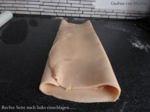 Glaubt mir, ihr werdet mit einer Köstlichkeit belohnt, die den Aufwand rechtfertigt. Als meine Freundin mit dem Rezept zu mir kam, war ich echt sekeptisch….. Ich konnte mir wirklich nicht vorstellen, dass das schmecken kann……. Aber…. meine Testpersonen, denen ich natürlich nicht gesagt habe, woraus der Strudel gemacht wurde, waren voll des Lobes……..