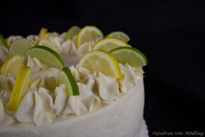 Eine liebe Freundin von mir ist 40 geworden und ich durfte Ihre Torten für die große Feier backen. Sie liebt es nicht so süß und ist ein Zitronen Fan. Da hab ich mir diese Torte einfallen lassen. Und die Gäste waren wieder einmal hellauf begeistert 🙂